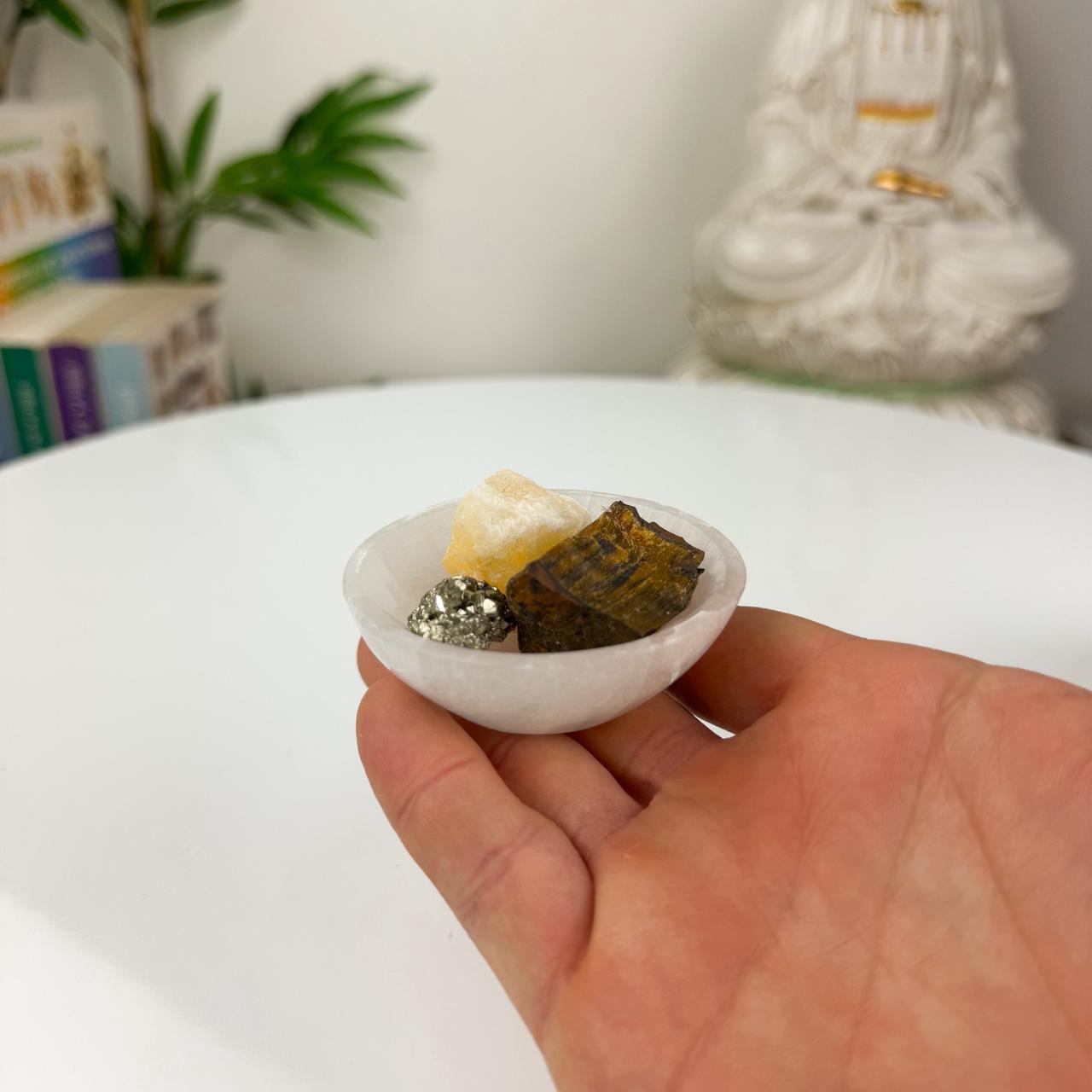 O Bowl de Selenita é uma peça poderosa de limpeza e elevação vibracional, ideal para purificar cristais, proteger ambientes e manter a energia sempre leve e equilibrada. A selenita é conhecida como a pedra da luz, capaz de dissolver energias densas, abrir caminhos espirituais e fortalecer o campo áurico.