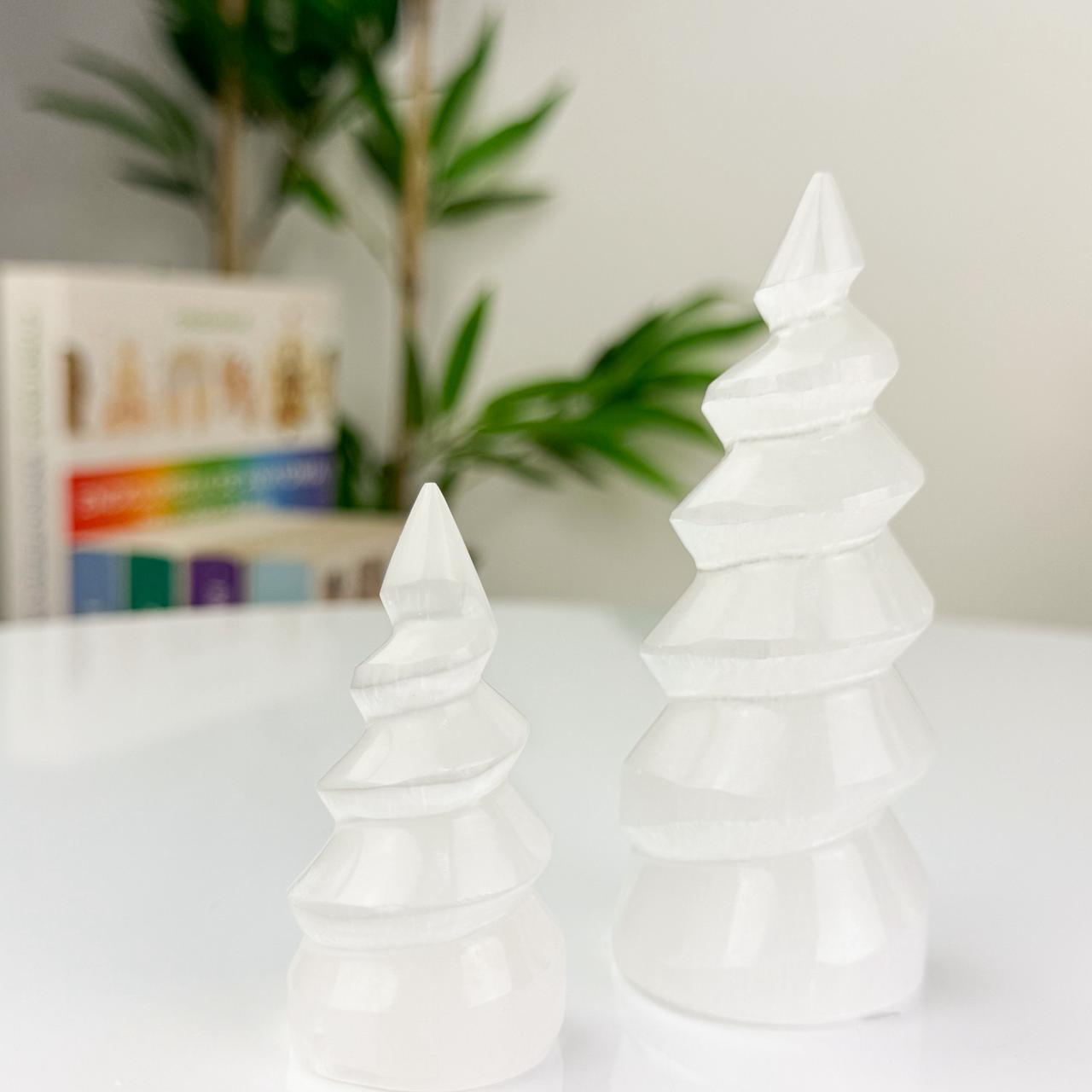A selenita é conhecida por sua vibração pura e luminosa, capaz de dissipar bloqueios, clarear pensamentos e renovar o campo energético. Na forma de espiral, essa energia flui de maneira contínua, criando um espaço de paz, proteção e equilíbrio.